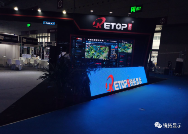 随着现代生活水平的不断提高,透明屏可应用于建筑媒体、博物馆、科技馆、连锁品牌店及大型商超综合体领域,用视频广告替代传统的平面广告,升华整体结构设计,讨好消费者的眼球。而在易游电竞展位上方和左侧为同款P3.9-7.8透明屏,通透率最高达到80%,无缝拼接玻璃立面,不影响窗户采光,灯条可以横装、竖装, 外观精致、简洁。